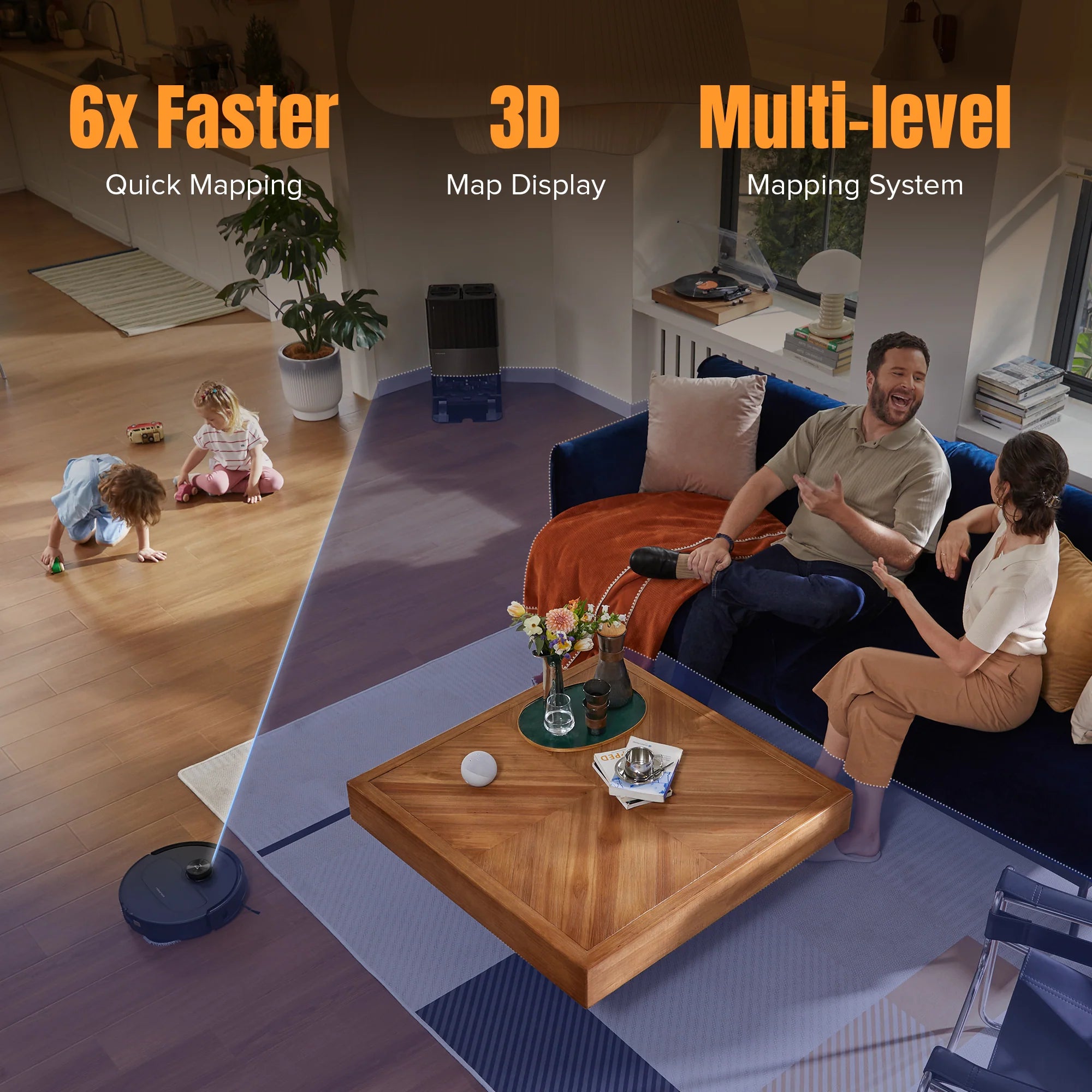 Powered by structured light, it is ready to detect and navigate around obstacles effortlessly, even in cluttered rooms with items scattered on the floor.