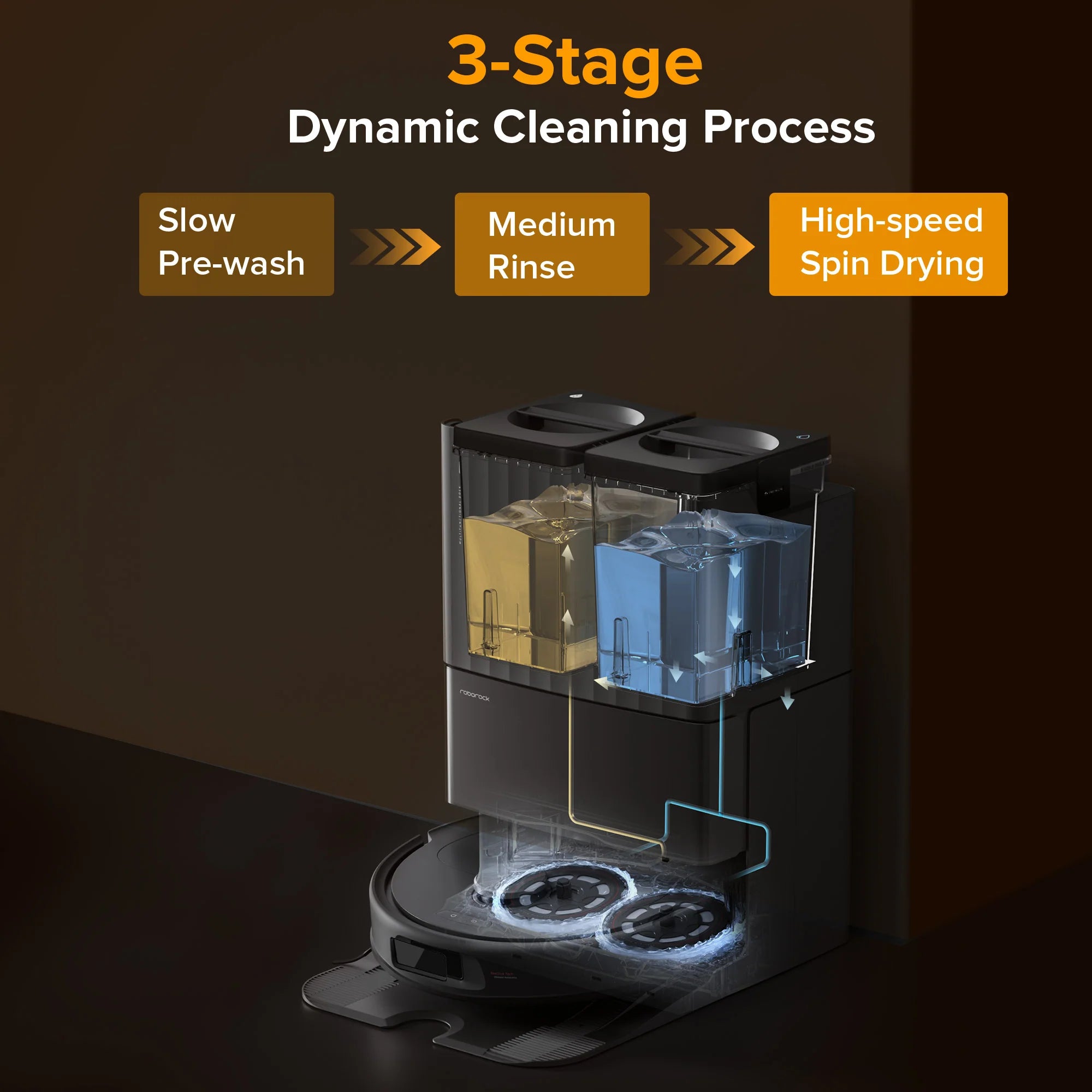 Featuring a 3-stage dynamic cleaning process to wash and dry the mops with high efficiency and convenience.