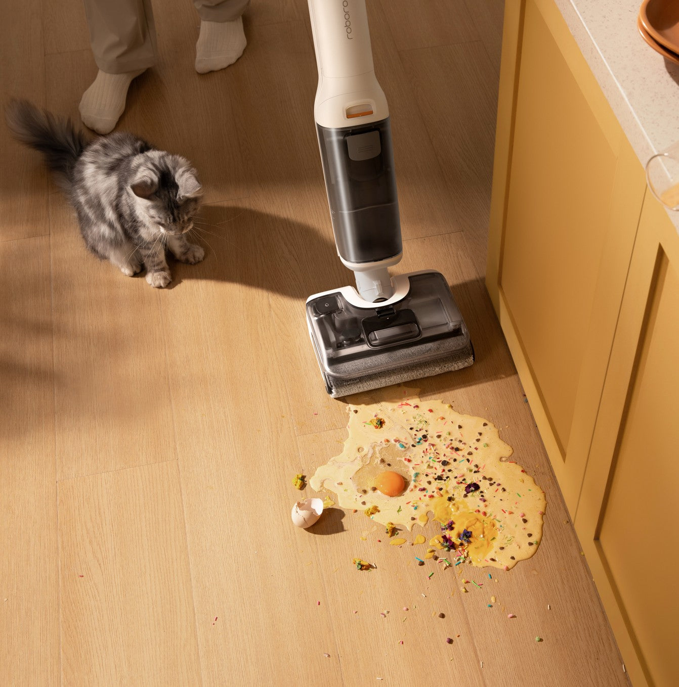 With a powerful 20,000 Pa suction and a 45-RPM Cleaning frequency, spotless results are achieved in a single stroke.*Based on internal testing carried out by the manufacturer.