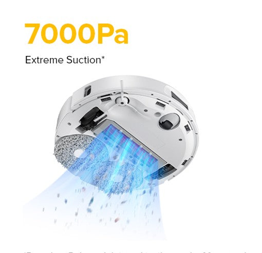 With its impressive 7000Pa suction*, Roborock Qrevo S is designed to remove hair and debris in floor crevices and deep in carpets. When operating at maximum suction, the main brush speed will be increased by 10% for optimal efficiency. *Based on Roborock internal testing under Max+ mode with a full battery according to IEC 62885-2:2021/5.11 standards.
