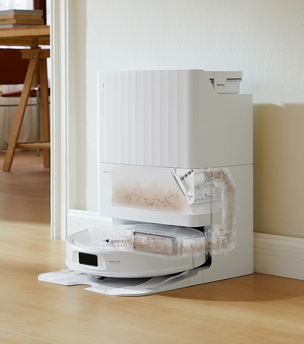 Inspired by the cleaning process of a washing machine, the Multifunctional Dock provides a thorough mop-washing experience. It features a slow pre-wash, medium rinse, and high-speed spin drying. Additionally, it dynamically adjusts the speed and water flow for optimal efficiency and convenience.