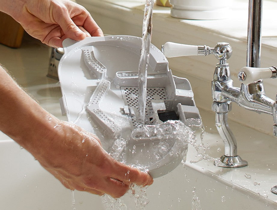 The entire dock base can be removed for thorough cleaning, reducing the buildup of mud and dirt over time. The upgraded large filter helps further reduce clogging.