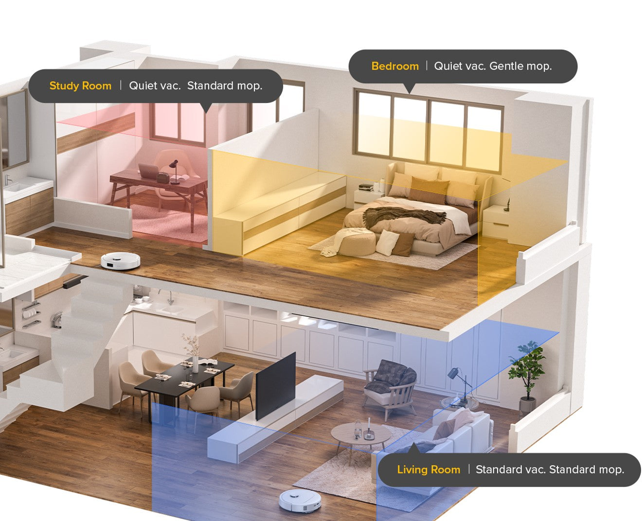 Tailored cleaning modes to your habits, room types, and floor materials, Roborock SmartPlan™ intelligently generates cleaning modes, and adjusts settings and preferences automatically. Enjoy worry-free cleaning with no need for manual mode adjustments.