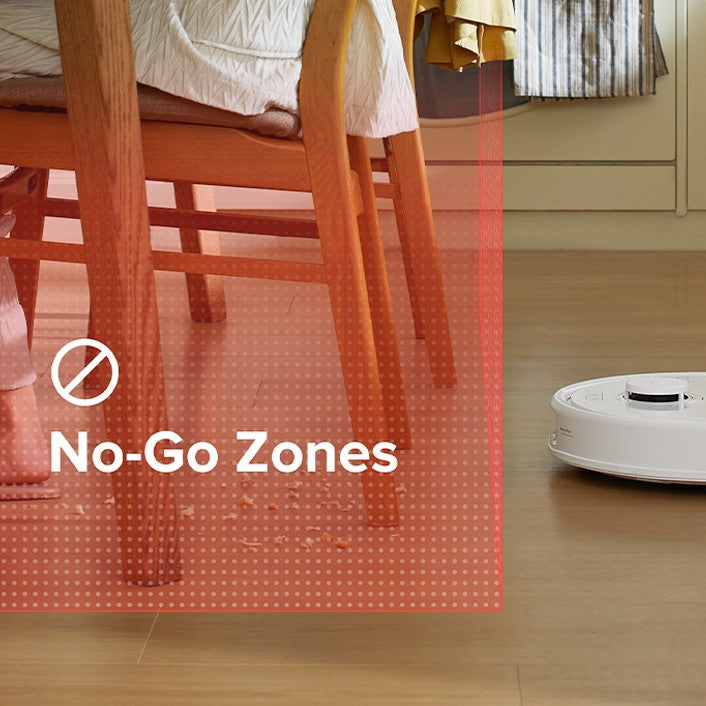 For easy-to-get-stuck places like below chairs and tables, the Roborock Qrevo S can detect and suggest them as 'No-Go Zones' to avoid getting stuck.