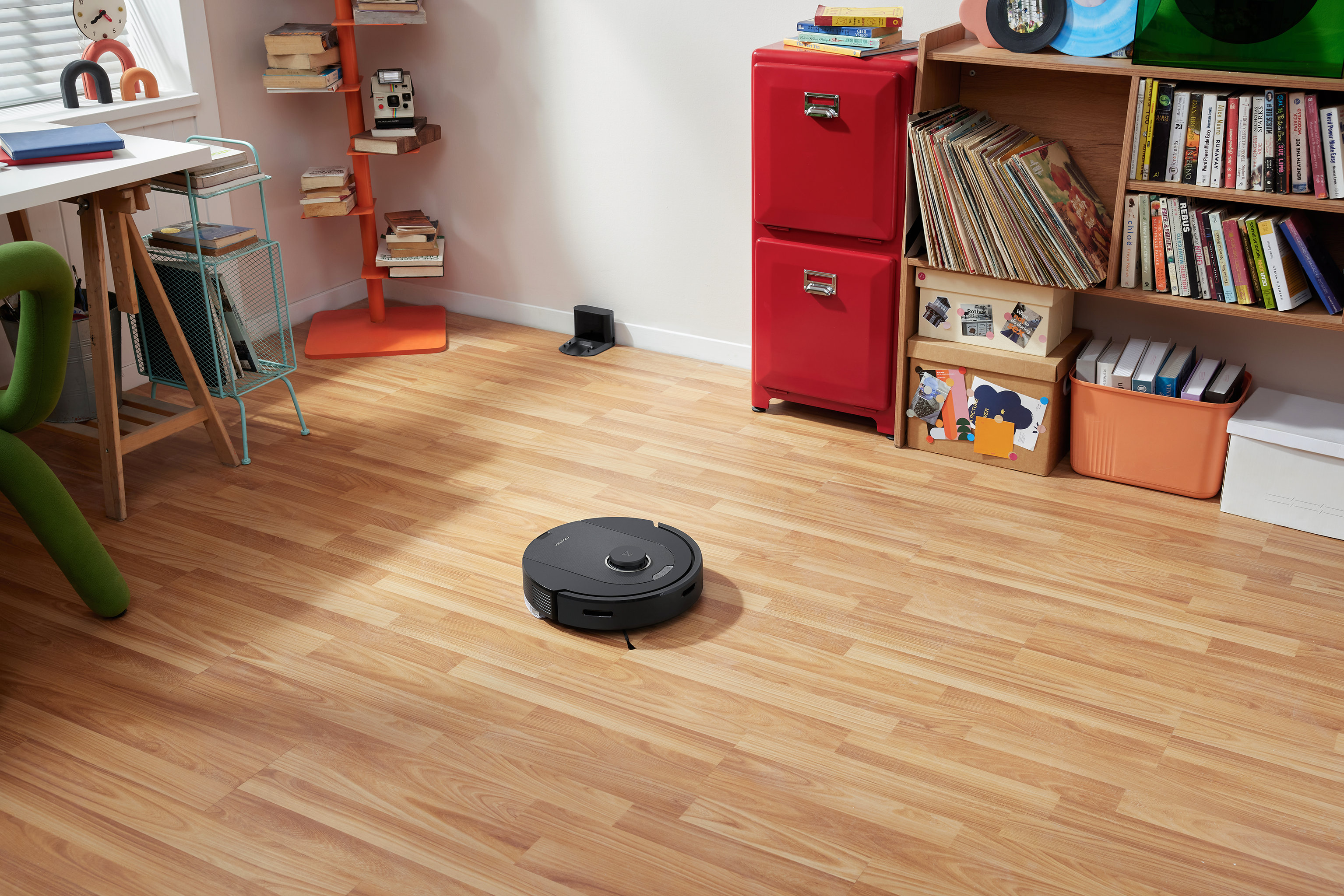 The Q5 Pro cleans hardwood floors by moving in the direction of the seams and getting between the cracks for better cleaning efficiency, leaving dirt nowhere to hide.
