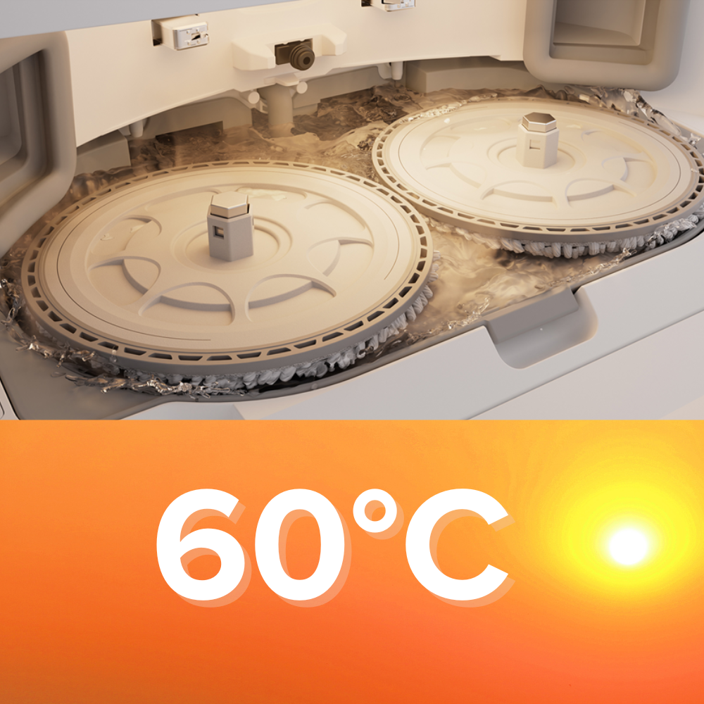 60°C hot water effectively removes stubborn stains and other dirt, saving time and water, while also disinfecting, to ensure that the mops are clean for an improved mopping experience.