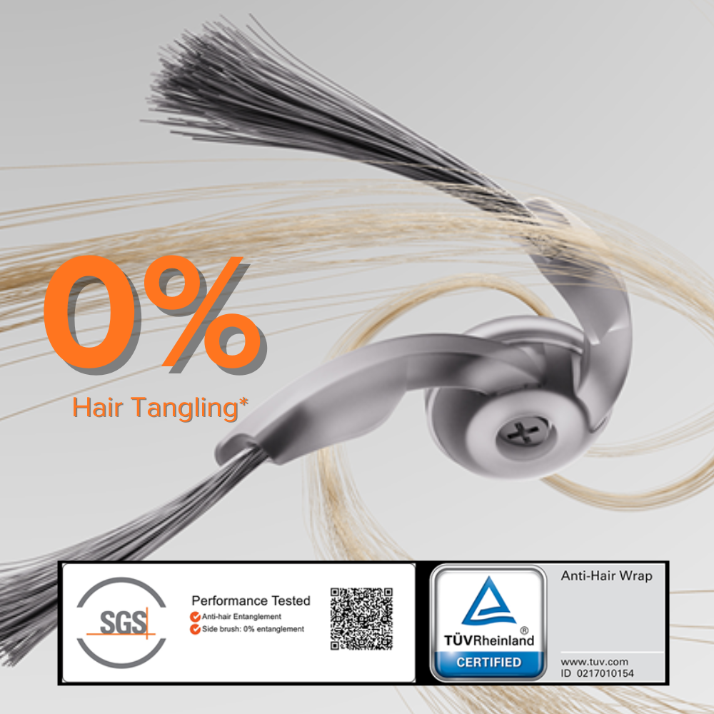 Thanks to the innovative arc-shaped design, the Anti-Tangle Side Brush harnesses centrifugal force to its advantage. This unique feature enables it to smoothly guide the hair to the bristle ends for easy cleanup.
